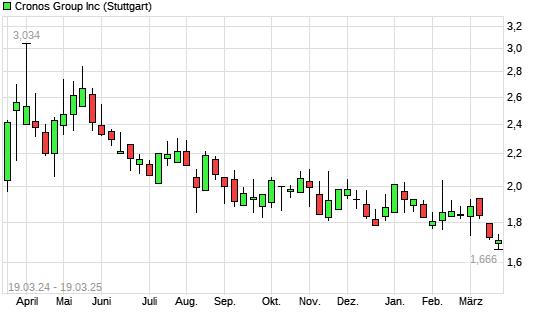 Mit dem Rücksetzer auf 1,69 EUR hat die Cronos Group-Aktie (ISIN CA22717L1013) am 18.03.2025 ein neues 12-Monats-Tief erreicht und damit den Kurs vom 12.03.2025 eingestellt.Die Cronos Group-Aktie ...weiterlesen