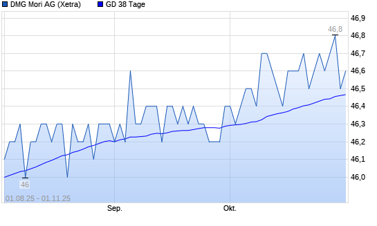 Mit dem Rücksetzer auf 46,20 EUR hat die DMG Mori-Aktie am 31.10.2025 die 38-Tage-Linie nach unten gekreuzt.Die DMG Mori-Aktie befindet sich seit dem 06.08.2024 im langfristigen Aufwärtstrend ...weiterlesen