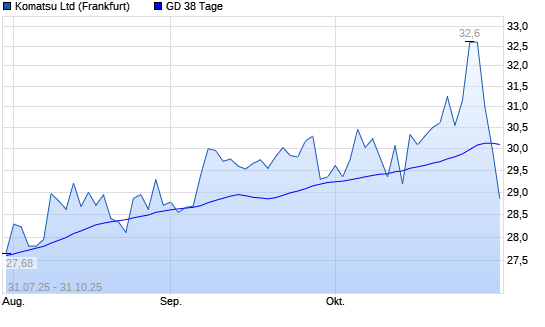 Mit dem Rücksetzer auf 30,00 EUR hat die Komatsu-Aktie am 30.10.2025 die 38-Tage-Linie nach unten gekreuzt.Die Komatsu-Aktie befindet sich seit dem 23.06.2025 im langfristigen Aufwärtstrend ...weiterlesen