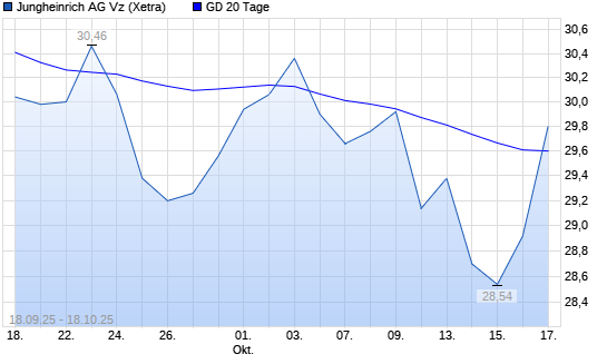 Mit dem Anstieg auf 29,76 EUR hat die Jungheinrich Vz-Aktie am 17.10.2025 die 20-Tage-Linie nach oben gekreuzt.Die Jungheinrich Vz-Aktie befindet sich seit dem 26.08.2025 im langfristigen Abwärtstrend ...weiterlesen