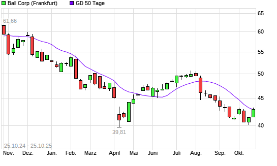 Mit dem Anstieg auf 42,84 EUR hat die Ball-Aktie am 24.10.2025 die 50-Tage-Linie nach oben gekreuzt.Die Ball-Aktie befindet sich seit dem 01.08.2025 im langfristigen Abwärtstrend und hat in ...weiterlesen