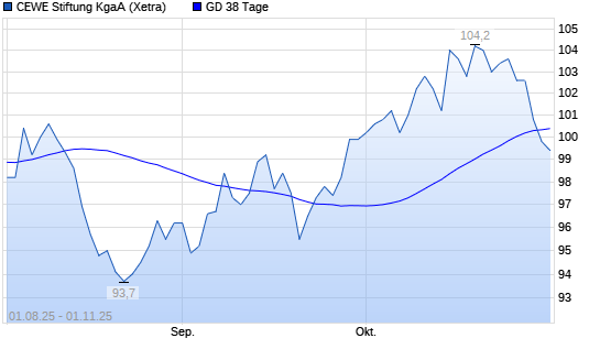 Mit dem Rücksetzer auf 99,40 EUR hat die Cewe Stiftung-Aktie am 31.10.2025 die 38-Tage-Linie nach unten gekreuzt.Die Cewe Stiftung-Aktie befindet sich seit dem 29.09.2025 im langfristigen ...weiterlesen