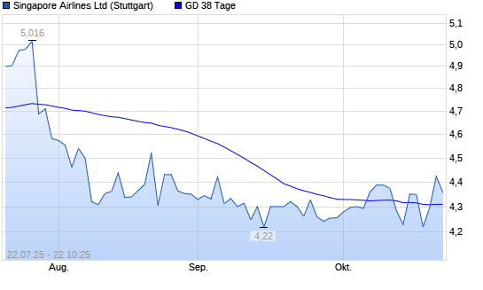 Mit dem Rücksetzer auf 4,35 EUR hat die Singapore Airlines-Aktie am 21.10.2025 die 38-Tage-Linie nach unten gekreuzt.Die Singapore Airlines-Aktie befindet sich seit dem 07.08.2025 im langfristigen ...weiterlesen