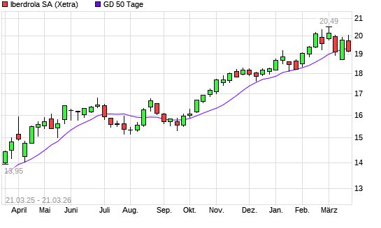 Mit dem Rücksetzer auf 19,16 EUR hat die Iberdrola-Aktie am 20.03.2026 die 50-Tage-Linie nach unten gekreuzt.Die Iberdrola-Aktie befindet sich seit dem 11.04.2024 im ...weiterlesen