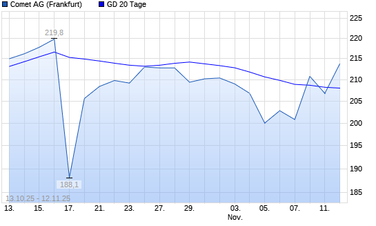 Mit dem Rücksetzer auf 206,80 EUR hat die COMET N1-Aktie am 11.11.2025 die 20-Tage-Linie nach unten gekreuzt.Die COMET N1-Aktie befindet sich seit dem 31.07.2025 im langfristigen Abwärtstrend ...weiterlesen