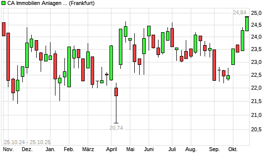 Mit dem Anstieg auf 24,84 EUR hat die CA Immobilien Anlagen-Aktie (ISIN AT0000641352) am 24.10.2025 ein neues 12-Monats-Hoch erreicht und damit den Kurs vom 22.04.2025 eingestellt.Die CA Immobilien ...weiterlesen