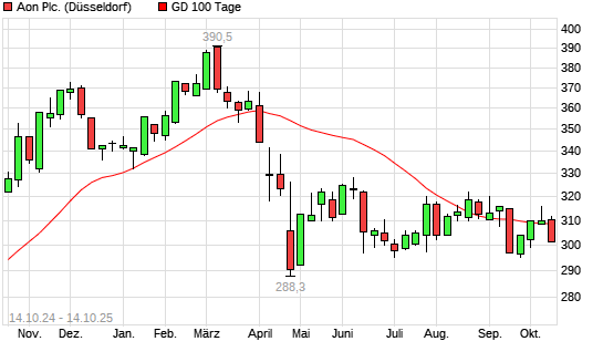 Mit dem Rücksetzer auf 309,30 EUR hat die AON-Aktie am 13.10.2025 die 100-Tage-Linie nach unten gekreuzt.Die AON-Aktie befindet sich seit dem 16.04.2025 im langfristigen Abwärtstrend und ...weiterlesen