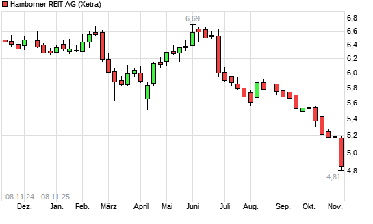 Mit dem Rücksetzer auf 4,84 EUR hat die Hamborner REIT-Aktie (ISIN DE000A3H2333) am 07.11.2025 ein neues 10-Jahres-Tief erreicht und damit den Kurs vom 06.11.2025 eingestellt.Die Hamborner ...weiterlesen