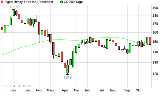 Mit dem Anstieg auf 147,20 EUR hat die Digital Realty Trust-Aktie am 30.10.2025 die 200-Tage-Linie nach oben gekreuzt.Die Digital Realty Trust-Aktie befand sich seit dem 29.10.2025 im langfristigen ...weiterlesen