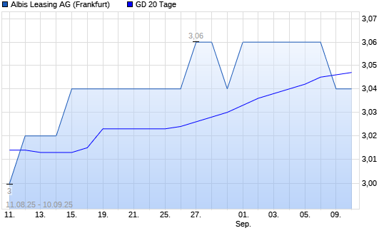 Mit dem Rücksetzer auf 3,04 EUR hat die Albis Leasing-Aktie am 09.09.2025 die 20-Tage-Linie nach unten gekreuzt.Die Albis Leasing-Aktie befindet sich seit dem 05.05.2025 im langfristigen ...weiterlesen