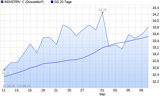 Mit dem Rücksetzer auf 33,36 EUR hat die INDUSTRIV. C-Aktie am 09.09.2025 die 20-Tage-Linie nach unten gekreuzt.Die INDUSTRIV. C-Aktie befindet sich seit dem 08.08.2025 im langfristigen ...weiterlesen