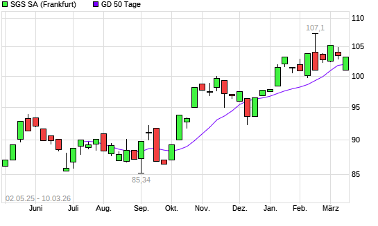 Mit dem Rücksetzer auf 100,95 EUR hat die SGS-Aktie am 09.03.2026 die 50-Tage-Linie nach unten gekreuzt.Die SGS-Aktie befindet sich seit dem 07.10.2025 im langfristigen ...weiterlesen