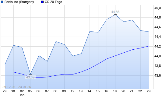 Mit dem Rücksetzer auf 44,35 EUR hat die Fortis-Aktie am 23.01.2026 die 20-Tage-Linie nach unten gekreuzt.Die Fortis-Aktie befindet sich seit dem 22.09.2025 im ...weiterlesen