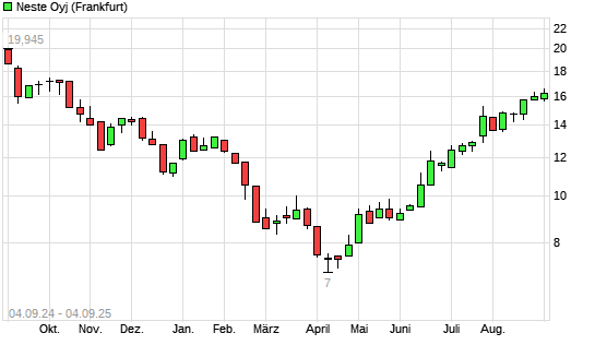 Mit dem Anstieg auf 16,56 EUR hat die Neste OYJ-Aktie (ISIN FI0009013296) am 03.09.2025 ein neues 6-Monats-Hoch erreicht und damit den Kurs vom 27.08.2025 eingestellt.Die Neste OYJ-Aktie befindet ...weiterlesen