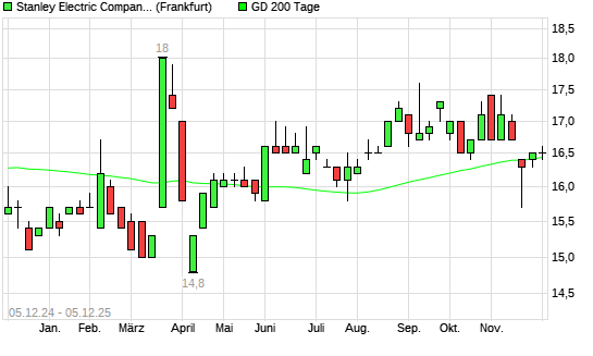 Mit dem Anstieg auf 16,60 EUR hat die Stanley Electric Company-Aktie am 04.12.2025 die 200-Tage-Linie nach oben gekreuzt.Die Stanley Electric Company-Aktie befand sich seit dem 03.12.2025 im ...weiterlesen