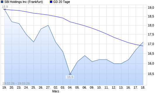 Mit dem Anstieg auf 17,10 EUR hat die SBI HOLDINGS-Aktie am 18.03.2026 die 20-Tage-Linie nach oben gekreuzt.Die SBI HOLDINGS-Aktie befindet sich seit dem 02.03.2026 im ...weiterlesen