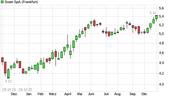 Mit dem Anstieg auf 5,42 EUR hat die Snam-Aktie (ISIN IT0003153415) am 28.10.2025 ein neues 3-Jahres-Hoch erreicht und damit den Kurs vom 22.10.2025 eingestellt.Die Snam-Aktie befindet sich ...weiterlesen