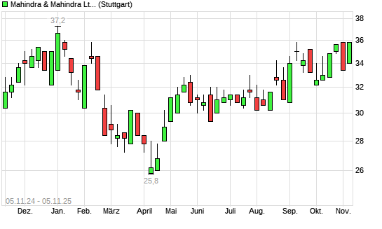Mit dem Anstieg auf 35,60 EUR hat die Mahindra & Mahindra GDR-Aktie (ISIN USY541641194) am 04.11.2025 ein neues 6-Monats-Hoch erreicht und damit den Kurs vom 22.10.2025 eingestellt.Die Mahindra ...weiterlesen