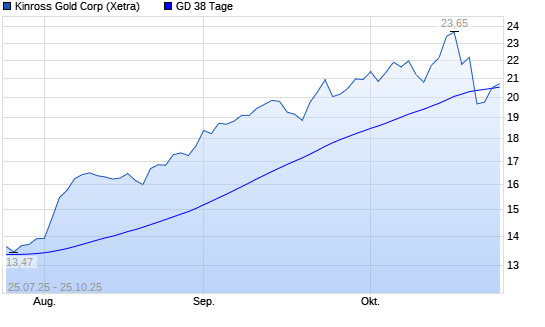 Mit dem Rücksetzer auf 20,50 EUR hat die Kinross Gold-Aktie am 24.10.2025 die 38-Tage-Linie nach unten gekreuzt.Die Kinross Gold-Aktie befindet sich seit dem 07.03.2024 im langfristigen ...weiterlesen