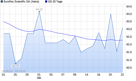 Mit dem Anstieg auf 62,40 EUR hat die Eurofins Scientific-Aktie am 22.10.2025 die 20-Tage-Linie nach oben gekreuzt.Die Eurofins Scientific-Aktie befindet sich seit dem 23.04.2025 im langfristigen ...weiterlesen