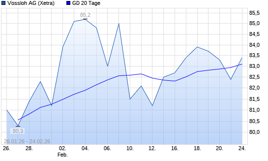 Mit dem Rücksetzer auf 82,20 EUR hat die Vossloh-Aktie am 23.02.2026 die 20-Tage-Linie nach unten gekreuzt.Die Vossloh-Aktie befindet sich seit dem 28.01.2026 im ...weiterlesen