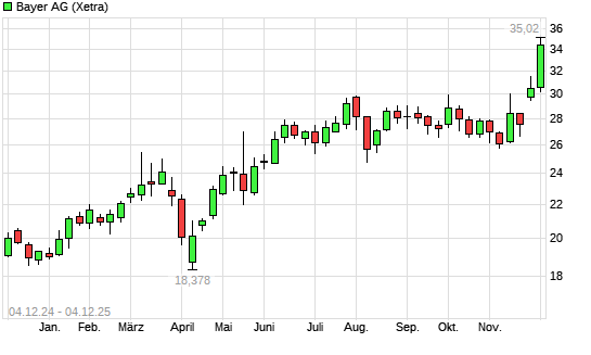 Mit dem Anstieg auf 34,30 EUR hat die Bayer-Aktie (ISIN DE000BAY0017) am 03.12.2025 ein neues 12-Monats-Hoch erreicht und damit den Kurs vom 02.12.2025 eingestellt.Die Bayer-Aktie befindet sich ...weiterlesen