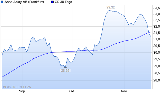 Mit dem Rücksetzer auf 31,42 EUR hat die Assa Abloy AB B-Aktie am 18.11.2025 die 38-Tage-Linie nach unten gekreuzt.Die Assa Abloy AB B-Aktie befindet sich seit dem 17.07.2025 im langfristigen ...weiterlesen