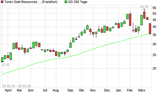 Mit dem Rücksetzer auf 35,36 EUR hat die Torex Gold Resources-Aktie am 19.03.2026 die 200-Tage-Linie nach unten gekreuzt. Die Torex Gold Resources-Aktie befindet sich jetzt ...weiterlesen