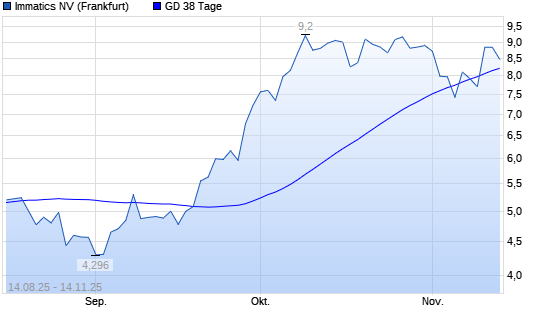 Mit dem Anstieg auf 8,94 EUR hat die Immatics-Aktie am 13.11.2025 die 38-Tage-Linie nach oben gekreuzt.Die Immatics-Aktie befindet sich seit dem 17.09.2025 im langfristigen Aufwärtstrend und ...weiterlesen
