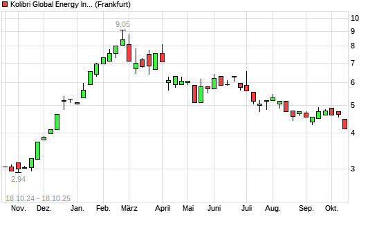 Mit dem Rücksetzer auf 4,14 EUR hat die Kolibri Global Energy-Aktie (ISIN CA50043K4063) am 17.10.2025 ein neues 6-Monats-Tief erreicht und damit den Kurs vom 09.09.2025 eingestellt.Die ...weiterlesen