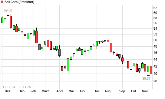 Mit dem Rücksetzer auf 40,20 EUR hat die Ball-Aktie (ISIN US0584981064) am 10.11.2025 ein neues 6-Monats-Tief erreicht und damit den Kurs vom 10.10.2025 eingestellt.Die Ball-Aktie befindet ...weiterlesen
