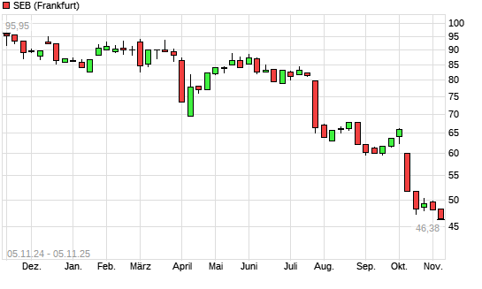Mit dem Rücksetzer auf 47,06 EUR hat die SEB-Aktie (ISIN FR0000121709) am 04.11.2025 ein neues 10-Jahres-Tief erreicht und damit den Kurs vom 15.10.2025 eingestellt.Die SEB-Aktie befindet ...weiterlesen