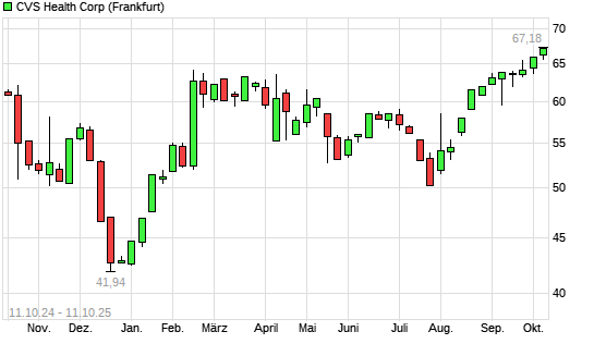 Mit dem Anstieg auf 67,18 EUR hat die CVS Health-Aktie (ISIN US1266501006) am 10.10.2025 ein neues 12-Monats-Hoch erreicht und damit den Kurs vom 06.10.2025 eingestellt.Die CVS Health-Aktie ...weiterlesen