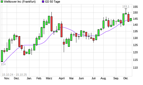 Mit dem Anstieg auf 145,45 EUR hat die Welltower-Aktie am 14.10.2025 die 50-Tage-Linie nach oben gekreuzt.Die Welltower-Aktie befindet sich seit dem 09.07.2025 im langfristigen Aufwärtstrend ...weiterlesen