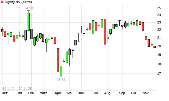Mit dem Rücksetzer auf 19,87 EUR hat die Signify-Aktie (ISIN NL0011821392) am 18.11.2025 ein neues 6-Monats-Tief erreicht und damit den Kurs vom 07.11.2025 eingestellt.Die Signify-Aktie ...weiterlesen