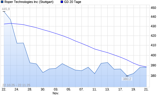 Mit dem Rücksetzer auf 383,60 EUR hat die Roper Industries-Aktie am 21.11.2025 die 20-Tage-Linie nach unten gekreuzt.Die Roper Industries-Aktie befindet sich seit dem 21.05.2025 im langfristigen ...weiterlesen