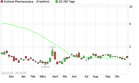 Mit dem Anstieg auf 1,37 EUR hat die Actinium Pharmaceuticals-Aktie am 27.10.2025 die 200-Tage-Linie nach oben gekreuzt.Die Actinium Pharmaceuticals-Aktie befand sich seit dem 17.10.2025 im ...weiterlesen