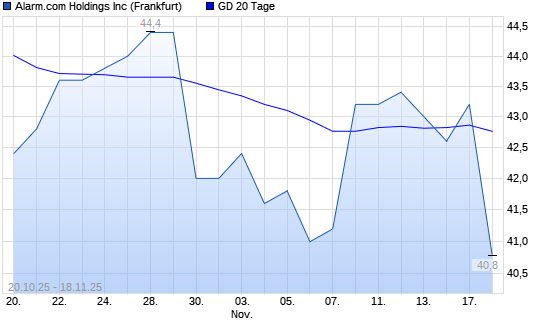 Mit dem Anstieg auf 43,20 EUR hat die Alarm.com Holdings-Aktie am 17.11.2025 die 20-Tage-Linie nach oben gekreuzt.Die Alarm.com Holdings-Aktie befindet sich seit dem 26.02.2025 im langfristigen ...weiterlesen