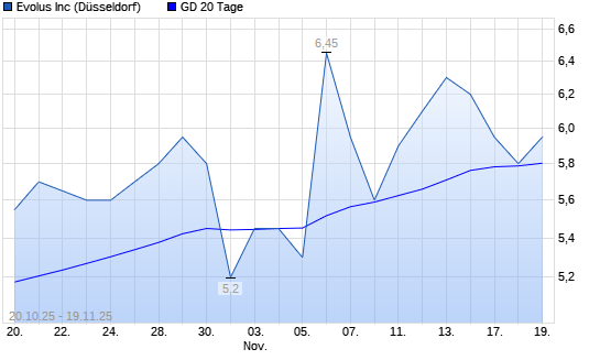 Mit dem Rücksetzer auf 5,90 EUR hat die Evolus-Aktie am 18.11.2025 die 20-Tage-Linie nach unten gekreuzt.Die Evolus-Aktie befindet sich seit dem 07.03.2025 im langfristigen Abwärtstrend ...weiterlesen