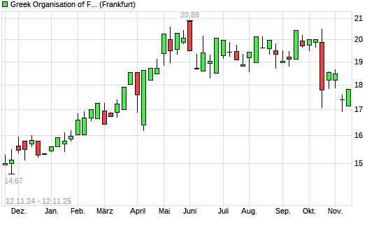 Mit dem Rücksetzer auf 17,20 EUR hat die Greek Organisation of Football Prognostics-Aktie (ISIN GRS419003009) am 11.11.2025 ein neues 6-Monats-Tief erreicht und damit den Kurs vom 06.11.2025 ...weiterlesen