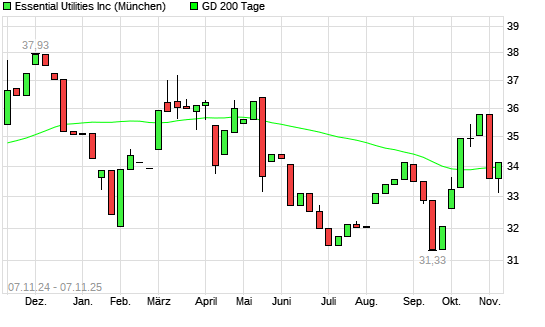 Mit dem Anstieg auf 34,10 EUR hat die Aqua America-Aktie am 06.11.2025 die 200-Tage-Linie nach oben gekreuzt.Die Aqua America-Aktie befand sich seit dem 29.10.2025 im langfristigen Abwärtstrend ...weiterlesen