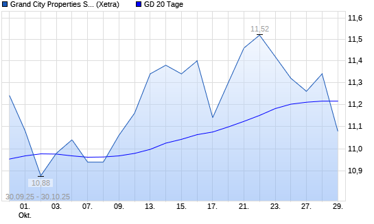 Mit dem Rücksetzer auf 11,16 EUR hat die Grand City Properties-Aktie am 29.10.2025 die 20-Tage-Linie nach unten gekreuzt.Die Grand City Properties-Aktie befindet sich seit dem 08.09.2025 ...weiterlesen
