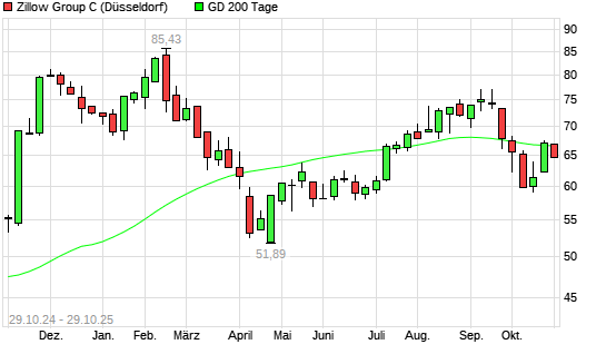 Mit dem Rücksetzer auf 65,46 EUR hat die Zillow Group C-Aktie am 28.10.2025 die 200-Tage-Linie nach unten gekreuzt.Die Zillow Group C-Aktie befand sich seit dem 23.10.2025 im langfristigen ...weiterlesen