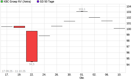 Mit dem Rücksetzer auf 100,15 EUR hat die KBC Groep-Aktie am 10.10.2025 die 50-Tage-Linie nach unten gekreuzt.Die KBC Groep-Aktie befindet sich seit dem 10.04.2025 im langfristigen Aufwärtstrend ...weiterlesen