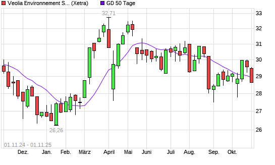 Mit dem Rücksetzer auf 28,78 EUR hat die Veolia Environnement-Aktie am 31.10.2025 die 50-Tage-Linie nach unten gekreuzt.Die Veolia Environnement-Aktie befindet sich seit dem 26.08.2025 ...weiterlesen