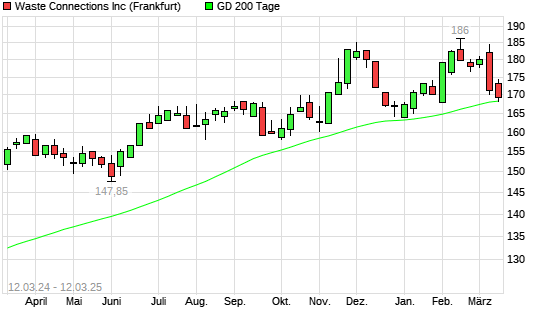 Mit dem Rücksetzer auf 168,50 EUR hat die Waste Connections-Aktie am 11.03.2025 die 200-Tage-Linie nach unten gekreuzt.Die Waste Connections-Aktie befand sich seit dem 01.12.2023 im langfristigen ...weiterlesen