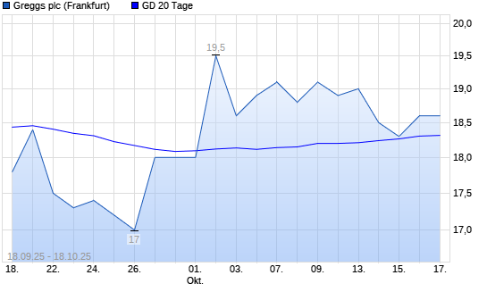 Mit dem Rücksetzer auf 18,80 EUR hat die Greggs-Aktie am 17.10.2025 die 20-Tage-Linie nach unten gekreuzt.Die Greggs-Aktie befindet sich seit dem 30.10.2024 im langfristigen Abwärtstrend ...weiterlesen