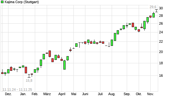 Mit dem Anstieg auf 29,60 EUR hat die Kajima-Aktie (ISIN JP3210200006) am 10.11.2025 ein neues All-Time-High erreicht und damit den Kurs vom 06.11.2025 eingestellt.Die Kajima-Aktie befindet ...weiterlesen