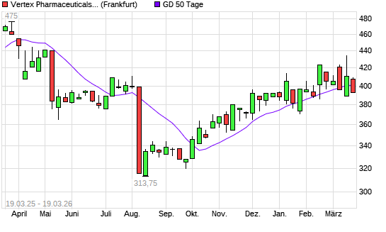 Mit dem Rücksetzer auf 399,05 EUR hat die Vertex Pharmaceuticals-Aktie am 18.03.2026 die 50-Tage-Linie nach unten gekreuzt.Die Vertex Pharmaceuticals-Aktie befindet sich seit ...weiterlesen