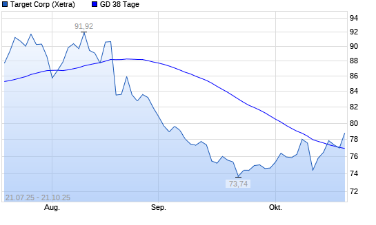 Mit dem Anstieg auf 77,88 EUR hat die Target-Aktie am 20.10.2025 die 38-Tage-Linie nach oben gekreuzt.Die Target-Aktie befindet sich seit dem 20.11.2024 im langfristigen Abwärtstrend und hat ...weiterlesen